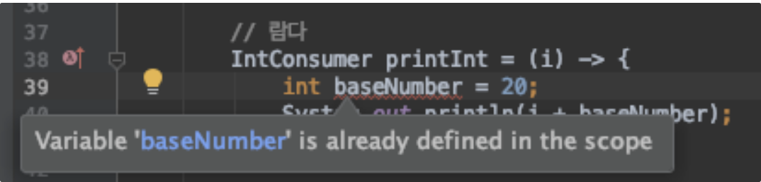 사실상 final이라는 것은 외부 변수(baseNumber)가 변경되지 않으면 자바 내부에서 사실상 final이라고 인식한다.