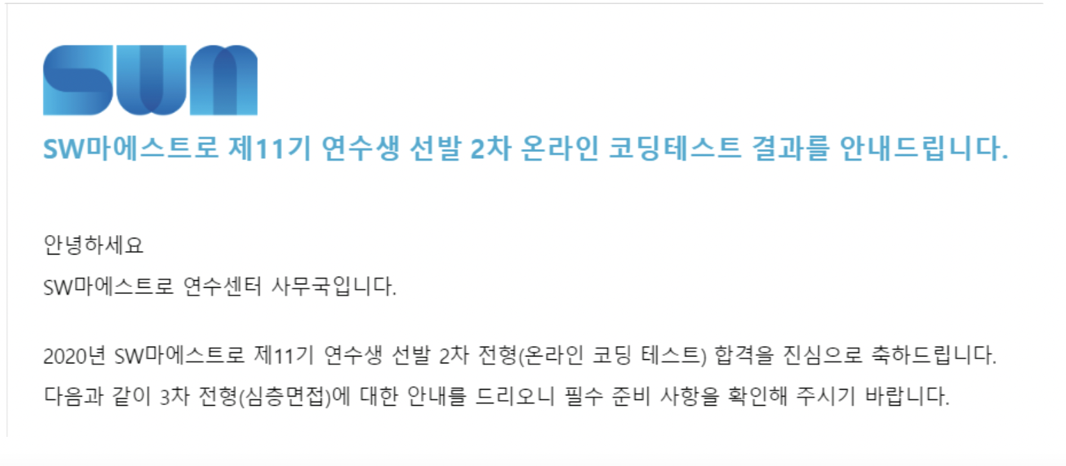 사실 SW마에스트로 이전 코테는 다 떨어져서 자신감이 없던 상태였는데 2달간 열심히 공부한 덕에 붙을 수 있었다.