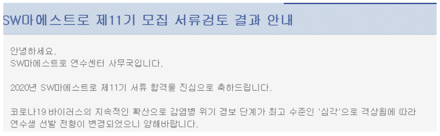 다음에는 SW마에스트로 합격하고 나서부터 기획 심의 발표까지 포스팅할 예정이다.