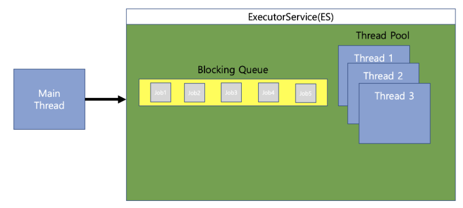 위 그림처럼 블로킹 큐를 통해 작업을 쌓아둘 수 있다.