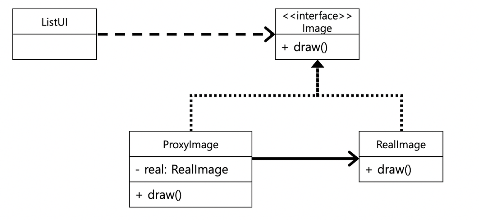이런 상황에서 ListUI 변경 없이 이미지 로딩 방식을 교체할 수 있도록 해주는 패턴이 프록시 패턴이다.