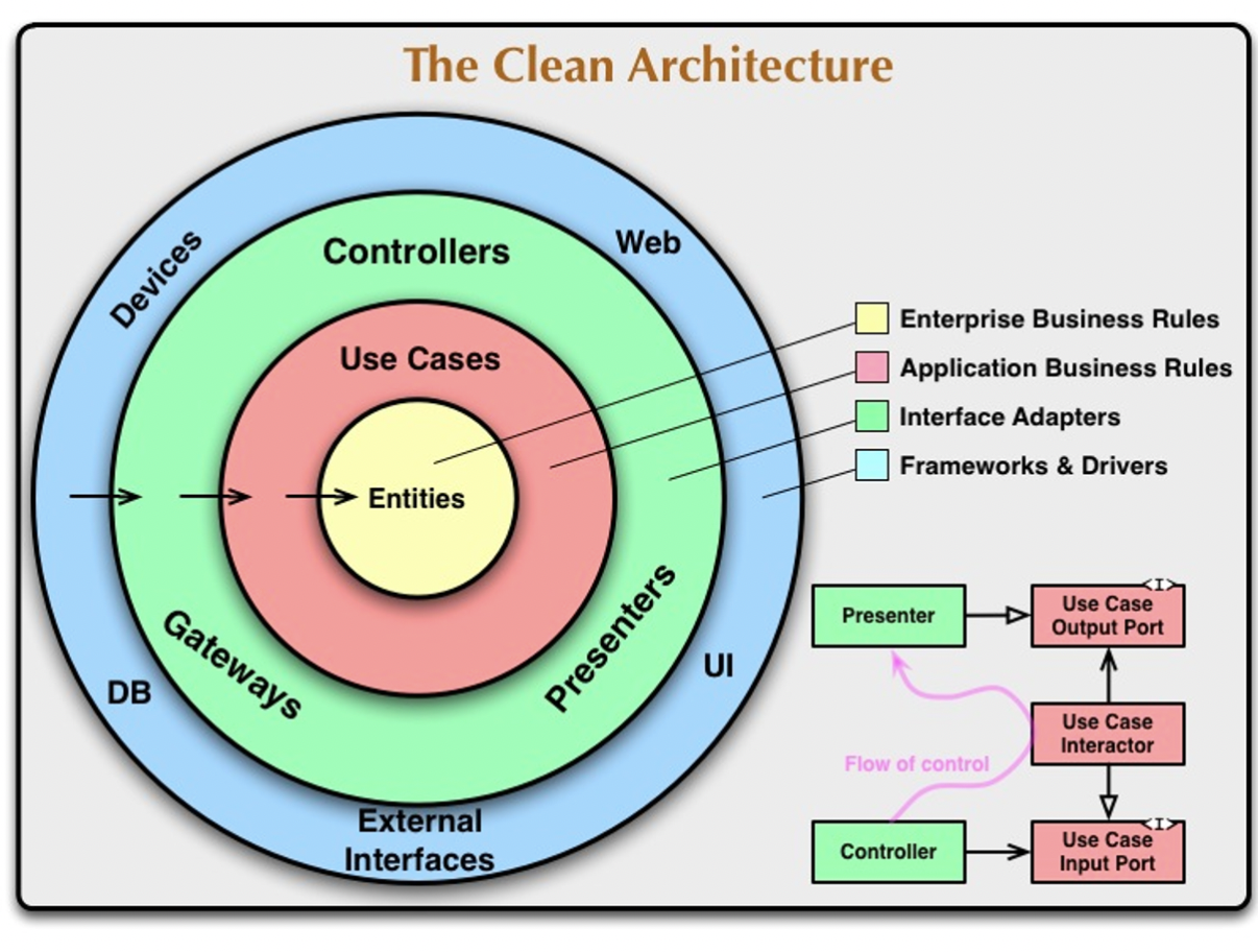 클린 아키텍처에서는 각 영역이 어떤 역할을 맡고 있는지 다음 그림으로 설명합니다.