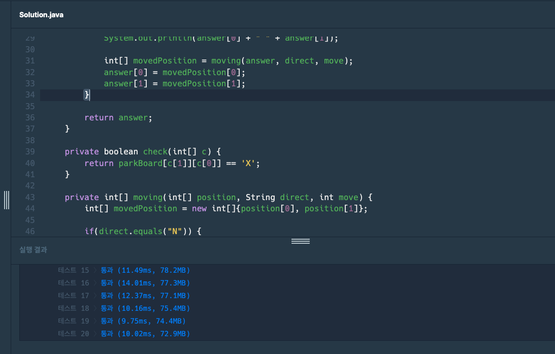 아쉬운 점은 x, y 좌표 정하는 것이 조금 헷갈려서 시간을 많이 소요한 점이었습니다.