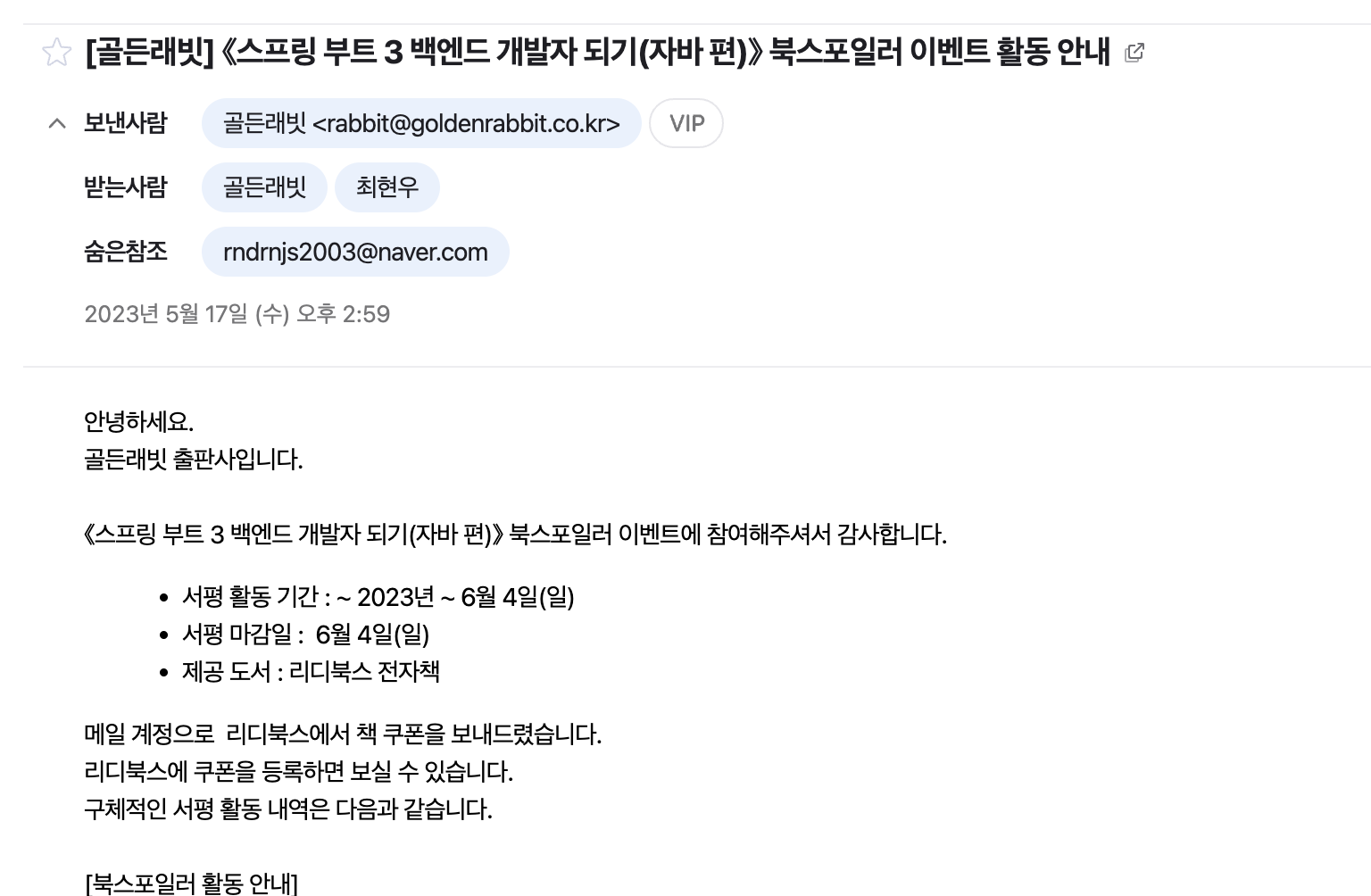 | [잽싸게 독서] 스프링 부트 3 백엔드 개발자 되기 자바편 레벨 2,3 (0) | 2023.05.19 |