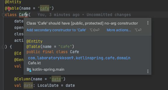 [스프링+코틀린] spring boot 3 Class 'Foo' should have [public, protected] no-arg constructor