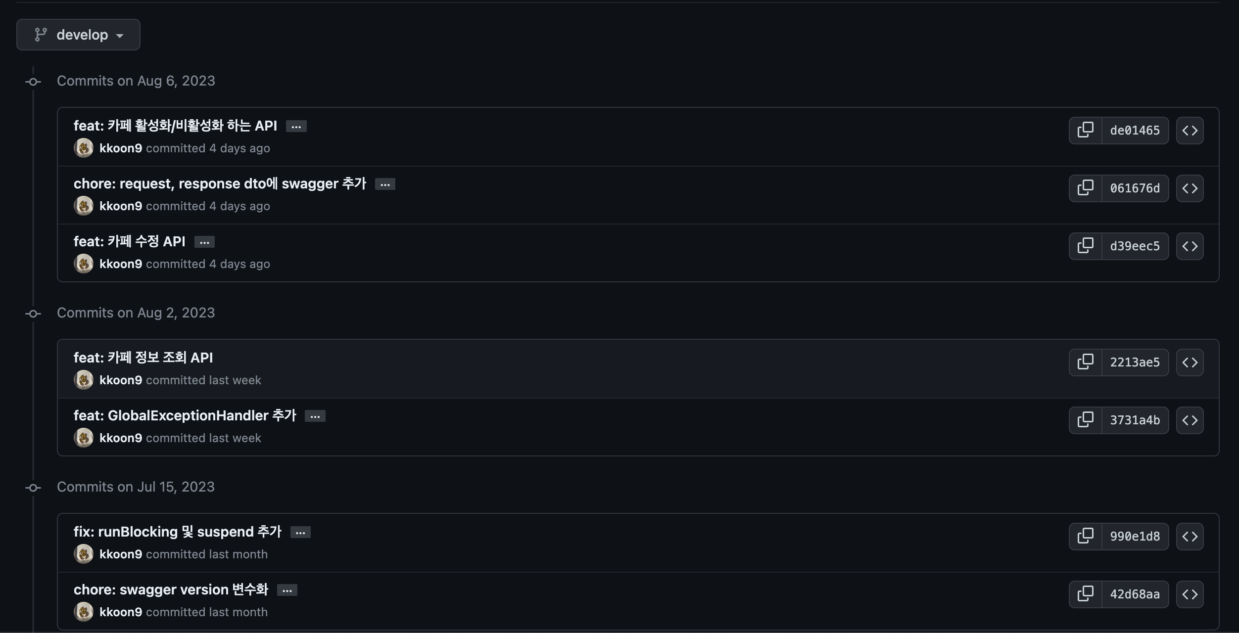 확실히 master 브랜치 커밋이 깔끔해지니, 버전관리가 좀 더 쉽다고 느껴집니다.