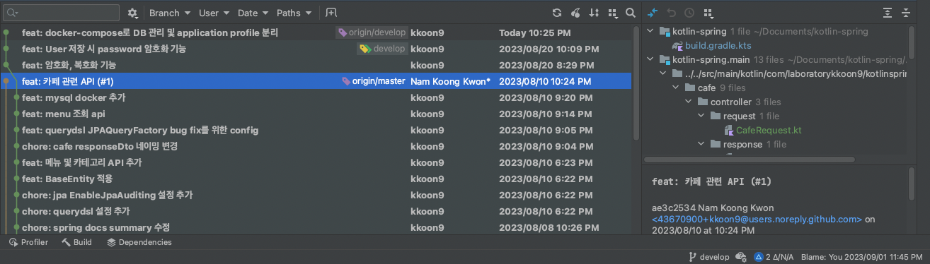 3. 수정 후 git push -f origin develop을 통해 github에 commit 삭제를 알려줍니다.