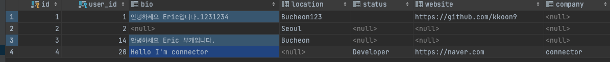 현재 저의 DB에는 4개의 프로필이 존재합니다.