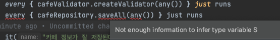 every { cafeRepository.saveAll<Cafe>(any()) } returns listOf(cafeDto.toEntity())