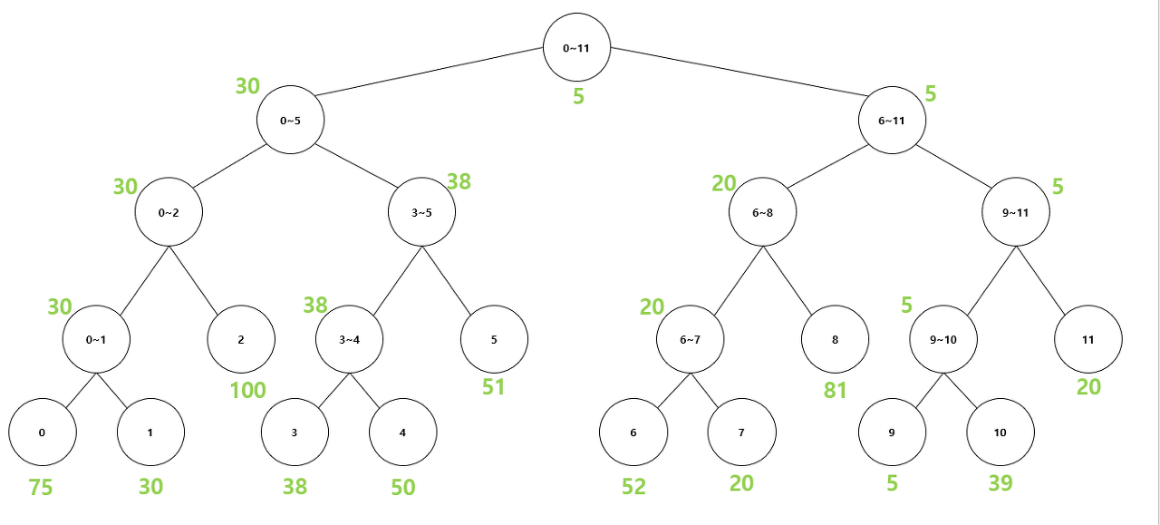 이 초기화 과정을 거치고 나면 결국 구간 최소 트리가 형성된다.
