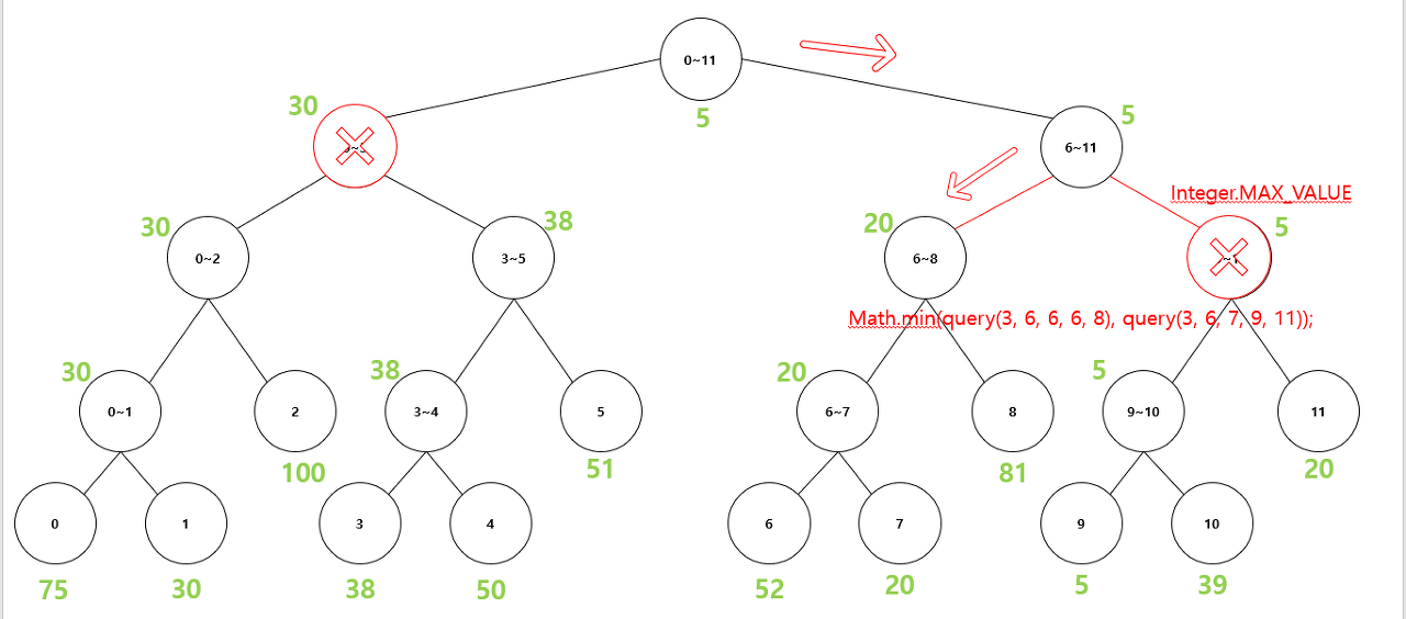 return Math.min(query(start, end, node * 2, nodeLeft, mid), query(start, end, node * 2 + 1, mid + 1, nodeRight));